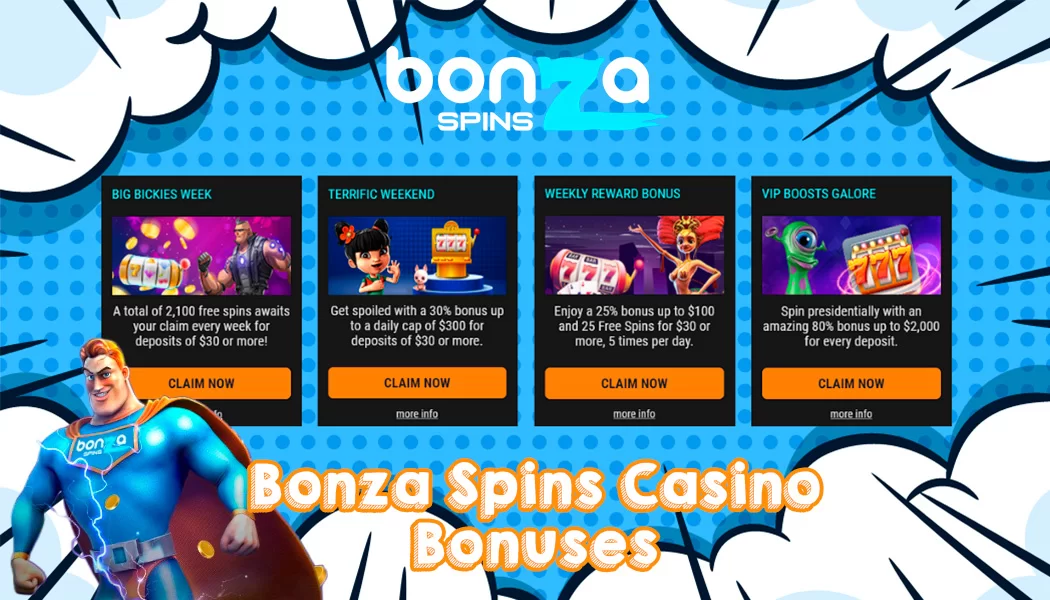 However, there are attractive daily bonuses from Monday to Sunday. According to their terms, the introduction of a minimum deposit will allow you to receive 60% up to 1,000 AUD, 70% up to 1,500 AUD, and 80% up to 2,000 AUD for replenishing your account with 200, 400, and 800 dollars in Bonza Spins with no deposit bonus codes , respectively.
