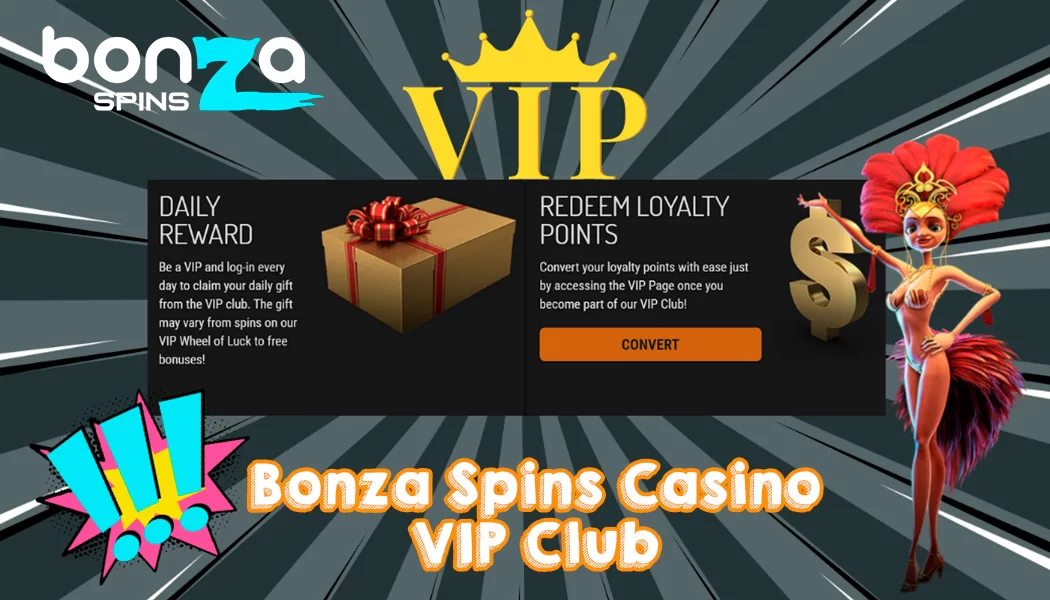 no deposit promo codes for Bonza Spins. However, there is an alternative option for obtaining satisfied users – a thoughtful VIP club. In it, players receive daily VIP gifts for visiting the portal and replenishing their accounts. At the same time, you can also receive no-deposit and individual gifts, and participate in VIP promotions.